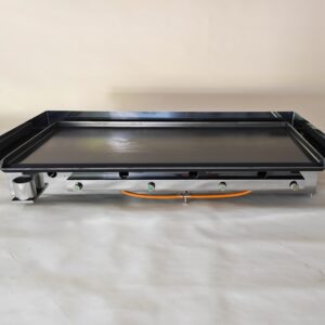 Osrednji element žara predstavlja masivna jeklena kuhalna plošča debeline 6 mm in dimenzije 120 × 60 cm, ki omogoča izjemno akumulacijo toplote ter zelo enakomerno segrevanje celotne površine. Debela plošča zagotavlja stabilno temperaturo tudi pri pripravi večjih količin hrane in dolgotrajni uporabi.