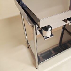 Postavitev: samostoječ (inox noge + spodnja polica)