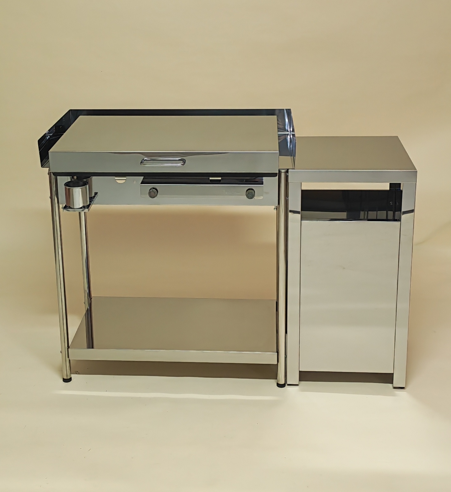 Inox box za plinsko jeklenko omogoča varno in urejeno shranjevanje jeklenke ter dodatno odlagalno ali delovno površino ob žaru.