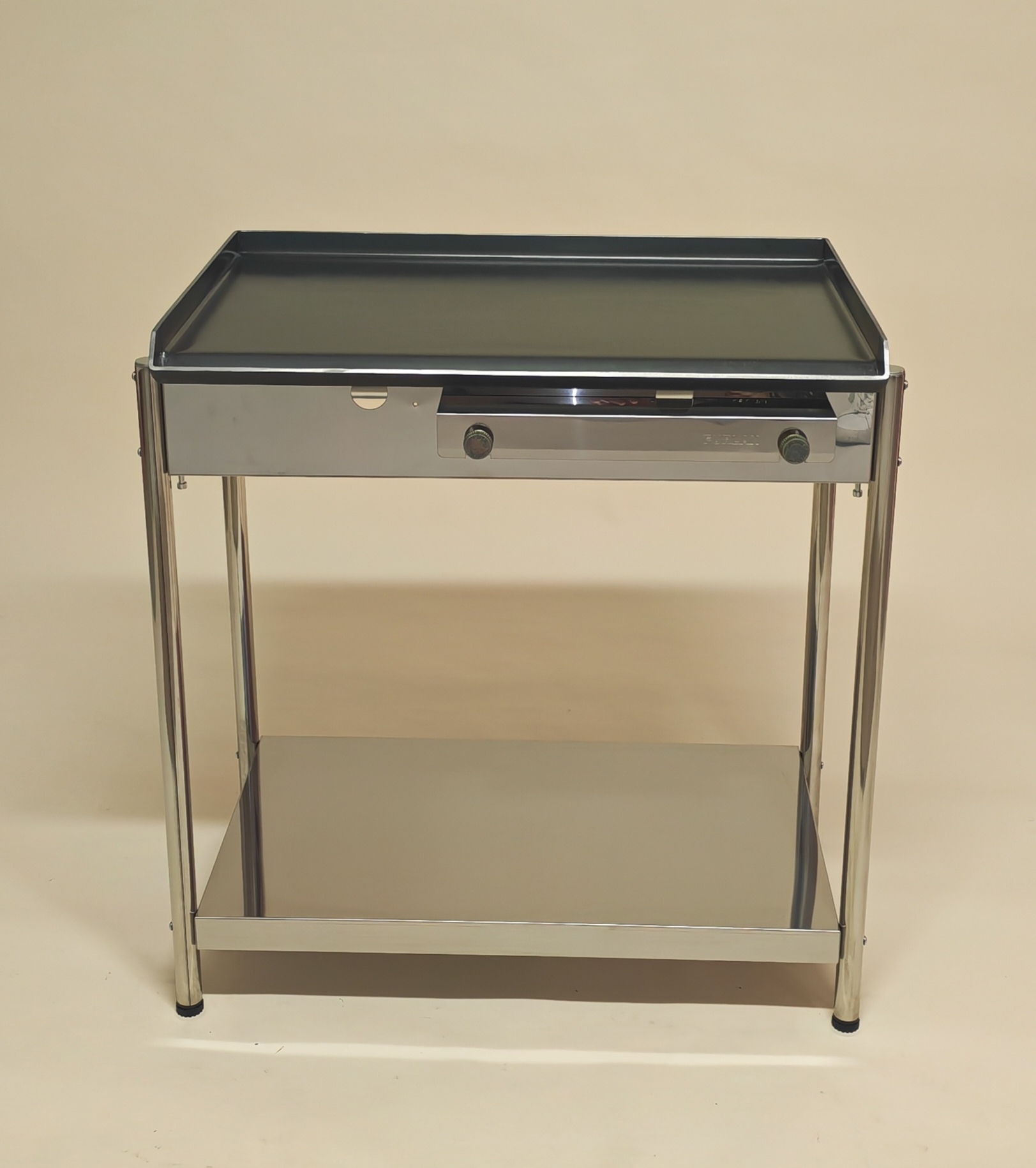 Žar stoji na stabilnih inox nogah ter vključuje spodnjo polico, ki omogoča praktičen dodaten odlagalni prostor za pripomočke in opremo. Celotna konstrukcija je zasnovana za dolgo življenjsko dobo in intenzivno uporabo.