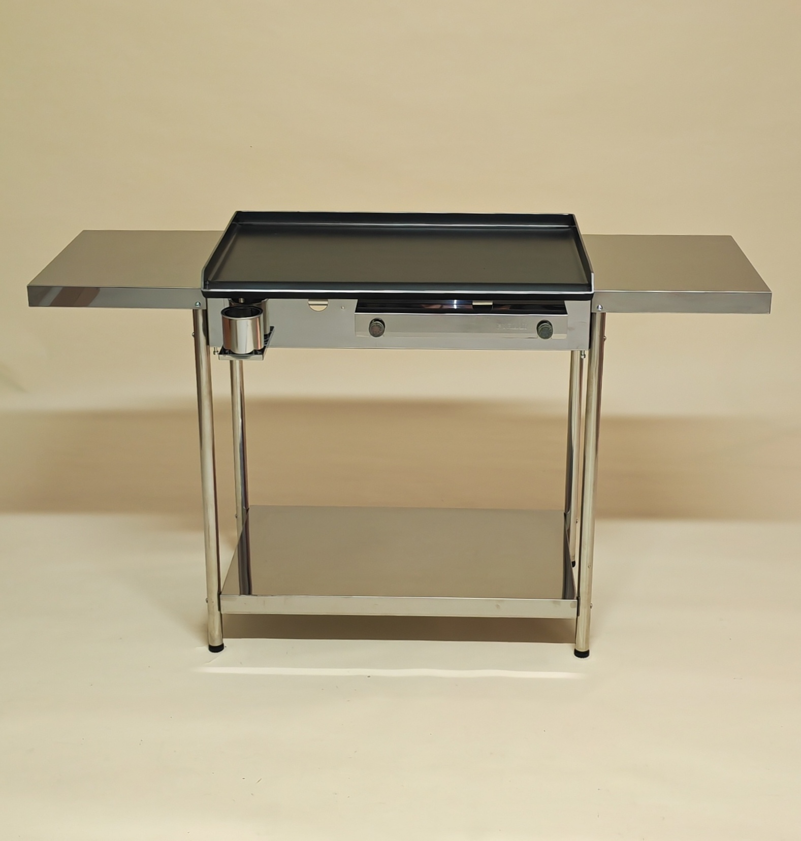 Model P700 PRO ima zgornjo odlagalno polico v isti ravnini kot žar plošča, ki omogoča praktično shranjevanje pripomočkov. Inox noge zagotavljajo stabilnost in dolgo življenjsko dobo.